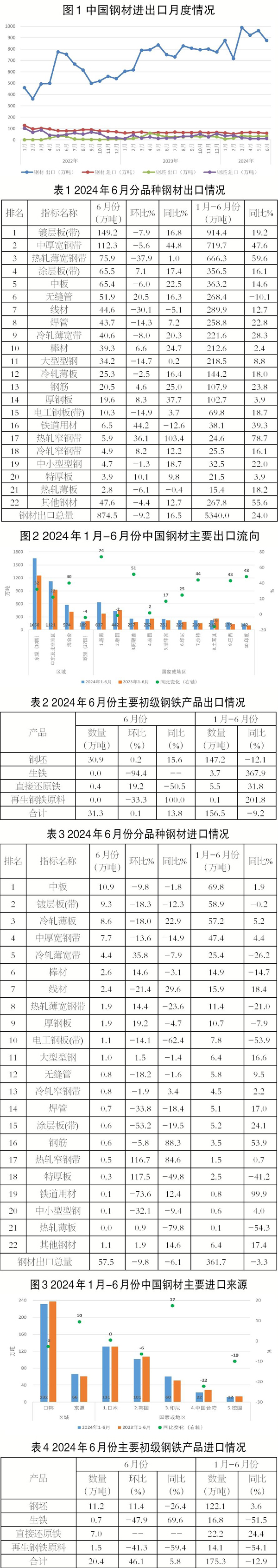 6月份,鋼材進口量延續下降態勢,進口產品和區域集中度進一步提高。