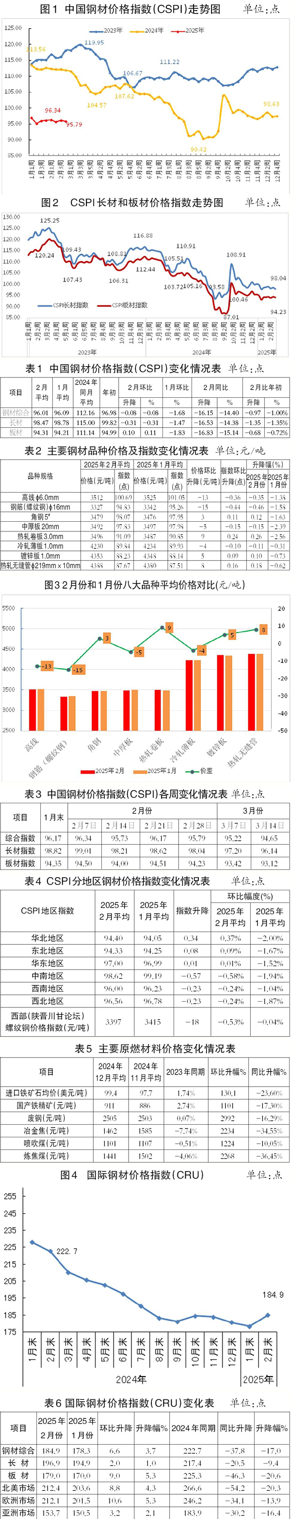 注:本表中的進(jìn)口鐵礦石均價(jià)2月份平均指2025年1月—2月份的平均值,上月平均指2024年12月份的均值,上年同期為2024年1月—2月份的均值,數(shù)據(jù)來(lái)自于海關(guān)總署。