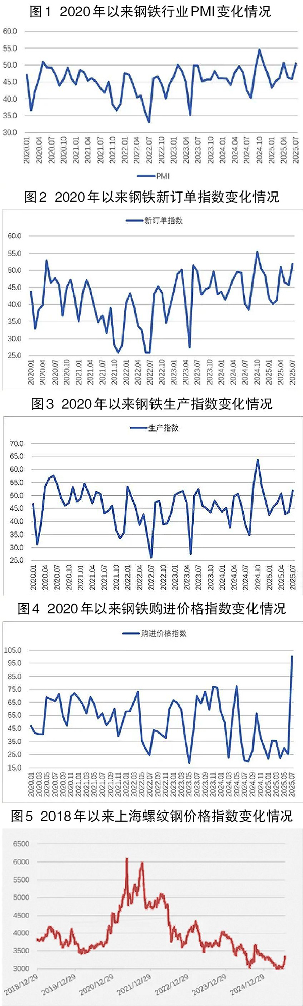 政策提振作用顯現,鋼鐵需求表現回暖。7月份,雖然高溫多雨等極端天氣持續存在,但政策端為國內市場帶來較強提振。據了解,7月受“反內卷”政策影響,各行業均有在供給端發力意向,整體市場預期向好,鋼鐵需求表現回暖。鋼鐵行業新訂單指數為51.9%,環比上升6.3個百分點,時隔2個月重回擴張區間,指數創下近9個月以來新高。終端需求也呈現回升態勢,以滬市終端線螺采購為例,7月份環比增長12.6%,出現了難得的淡季回升表現。