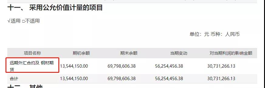 金麒麟在2020年年度報告中披露的衍生金融資產中包含有鋼材期貨,其遠期外匯合約及鋼材期貨年末余額為6979.86萬元,而年初為1354.42萬元。