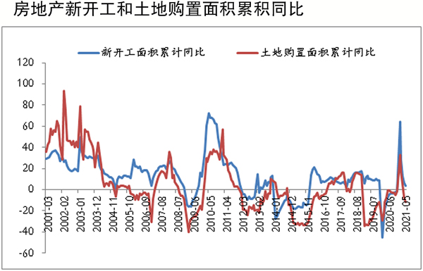 螺紋鋼下游主要是房地產(chǎn)和基建行業(yè)。近幾個(gè)月,國(guó)內(nèi)房地產(chǎn)投資持續(xù)降溫。根據(jù)國(guó)家統(tǒng)計(jì)局?jǐn)?shù)據(jù),上半年國(guó)內(nèi)房地產(chǎn)投資同比增長(zhǎng)15%,兩年平均增長(zhǎng)率為8.2%,較1月~5月份回落0.4個(gè)百分點(diǎn)。作為先行指標(biāo)的新開(kāi)工面積和拿地?cái)?shù)據(jù)持續(xù)走弱,上半年新開(kāi)工面積與2019年同期相比下降4%,土地購(gòu)置面積同比下降12.62%,累積增速均連續(xù)5個(gè)月負(fù)增長(zhǎng),且土地購(gòu)置面積降幅連續(xù)兩個(gè)月在10%以上。7月下旬,上海市住房限購(gòu)升級(jí),且首套房貸利率也有所上調(diào),同時(shí)多家銀行因貸款違規(guī)流入房地產(chǎn)被罰。7月30日,中共中央政治局會(huì)議也再度重申了“房住不炒”的基調(diào)。這些消息均表明地產(chǎn)調(diào)控的大方向不會(huì)改變,所以房企拿地仍會(huì)維持謹(jǐn)慎態(tài)度,新開(kāi)工面積也大概率維持負(fù)增長(zhǎng)。