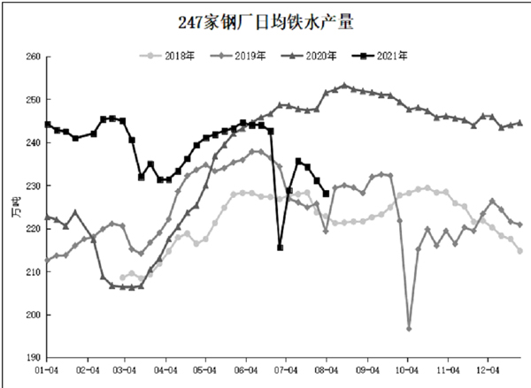 回到焦炭基本面上,焦價(jià)上漲120元/噸后,焦企平均噸焦盈利未出現(xiàn)明顯擴(kuò)張,上周為283元/噸,主要原因是焦價(jià)的上漲基本沖抵了原材料價(jià)格的上漲。另外,焦價(jià)再度開啟提漲周期,焦企生產(chǎn)積極性好轉(zhuǎn),前期主產(chǎn)地山西省部分城市因虧損導(dǎo)致主動(dòng)限產(chǎn)的焦企已逐步恢復(fù)生產(chǎn)。調(diào)研數(shù)據(jù)顯示,100家獨(dú)立焦企樣本產(chǎn)能利用率為73.28%,環(huán)比回升0.80個(gè)百分點(diǎn),同比下降6.72個(gè)百分點(diǎn)。在需求端,目前各地區(qū)陸續(xù)出臺(tái)控制粗鋼產(chǎn)量政策,短期鋼廠高爐產(chǎn)能利用率保持溫和下降趨勢(shì)。上周,247家高爐煉鐵產(chǎn)能利用率為85.73%,環(huán)比下降1.11個(gè)百分點(diǎn),同比下降9.03個(gè)百分點(diǎn);日均鐵水產(chǎn)量為228.19萬噸,環(huán)比下降2.95萬噸,同比下降24.03萬噸。隨著需求的持續(xù)回落,焦炭供需偏緊格局已有所改善,但總體庫(kù)存尚未形成有效庫(kù)存累積趨勢(shì),仍保持在歷史低位水平。