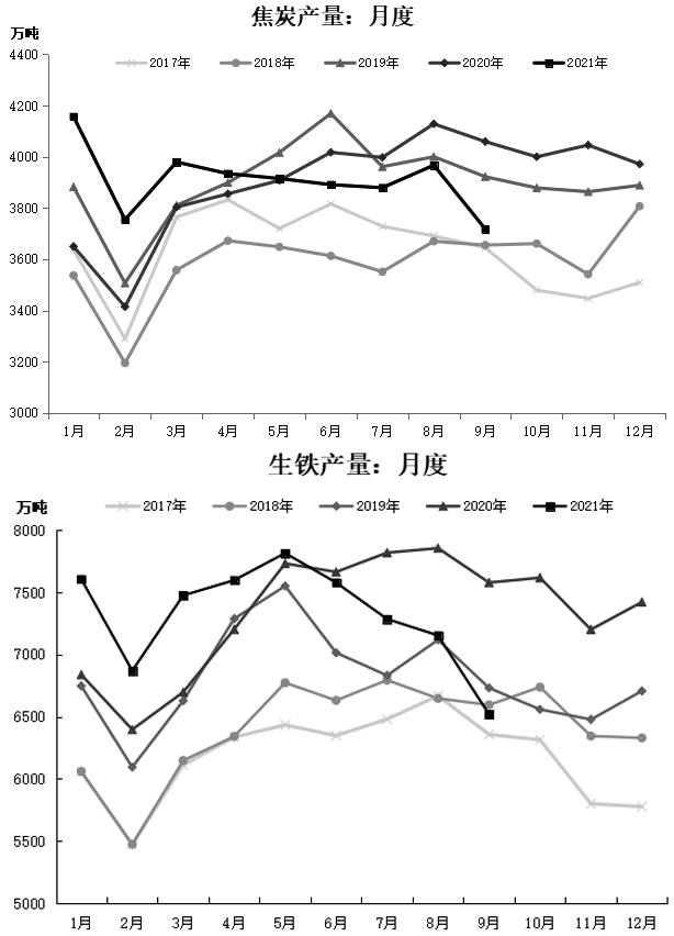 需求方面,鋼鐵市場在粗鋼產(chǎn)量同比不增及能耗雙控政策的雙重制約下,粗鋼、生鐵產(chǎn)量均有明顯下降。其中粗鋼產(chǎn)量1月~9月份累計同比增幅已收窄至2.0%,若10月~12月份單月產(chǎn)量按照9月份產(chǎn)量的7375.0萬噸計算,全年粗鋼產(chǎn)量約為10.27億噸,較去年全年減少3800萬噸,將順利完成粗鋼年控任務(wù)。同時,這也表明鋼廠進一步減產(chǎn)的空間不大,甚至有一定的回升空間。另外,生鐵產(chǎn)量1月~9月份累計同比增長轉(zhuǎn)負,即已低于去年同期水平。從近期市場反應(yīng)來看,粗鋼減量措施成效明顯,疊加有關(guān)部門糾正“一刀切”停產(chǎn)限產(chǎn)或“運動式”減碳的行為,部分地區(qū)限產(chǎn)、限電有所放松,鋼廠高爐逐步復(fù)產(chǎn)。數(shù)據(jù)顯示,上周247家鋼廠高爐產(chǎn)能利用率為80.05%,環(huán)比減少0.61個百分點,同比減少12.29個百分點;日均鐵水產(chǎn)量為214.58萬噸左右,環(huán)比減少1.64萬噸,同比減少31.21萬噸。目前焦炭需求仍處于偏低水平,預(yù)計后期隨著限產(chǎn)放松有望迎來好轉(zhuǎn)。