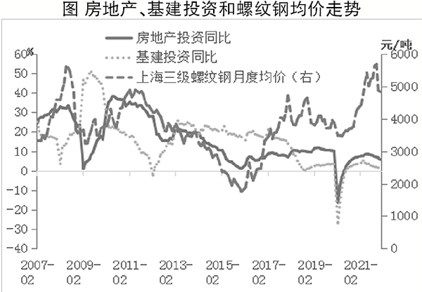 但從現實情況來看,房地產行業對鋼材的需求比較低迷。1月份,全國100個大中城市土地成交面積同比下降25.59%,而1月份和2月份30個大中城市商品房成交面積均值同比分別下降了29.56%和27.31%。所以,政策的邊際寬松傳導到房地產行業對鋼材需求的恢復是需要一定時間的,至少從上半年來看,房地產行業投資和新開工不會有太大起色。基建投資則在政策刺激下已經出現企穩態勢,2021年12月份當月基建投資增速同比增長了3.75%,為2021年4月份之后首次轉正,且今年《政府工作報告》強調了要適度超前開展基礎設施建設,所以今年上半年基建投資的企穩比較確定。那么,建筑業對鋼材的需求在今年上半年就會呈現基建對沖房地產行業的格局。從歷史數據看,在這個階段,螺紋鋼價格走勢比較弱,而一旦房地產行業開始企穩,螺紋鋼價格亦會同步走強。如果排除通貨膨脹預期因素,目前的需求狀況可能不支持建筑鋼材價格進一步走高,未來還是需要關注房地產行業企穩的時點,筆者預計要到第3季度左右,第2季度可能存在需求兌現不及預期的風險。