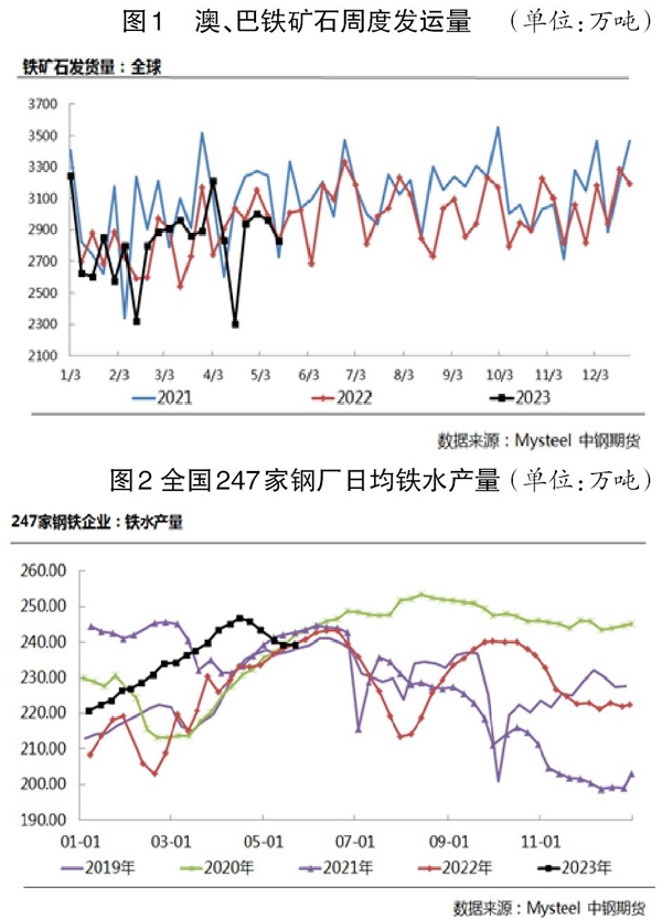 從目前房地產、基建等鋼鐵需求側的環比數據來看,淡季終端需求邊際好轉的概率較小,短期鐵礦石價格向上驅動力偏弱;中期來看,由于1月—4月份全國粗鋼產量同比大幅增加,按粗鋼產量平控基準估算,后期鐵礦石需求同比將出現顯著下降。若考慮廢鋼供應量回升對生鐵產量的替代作用,則鐵礦石需求下降將更為顯著,利空遠月需求。若粗鋼產量平控政策擴大至全國范圍,則鐵礦石需求環比降幅同樣顯著,筆者預估2023年5月—12月份日均鐵水產量或下降至226.7萬噸(鋼聯口徑)。