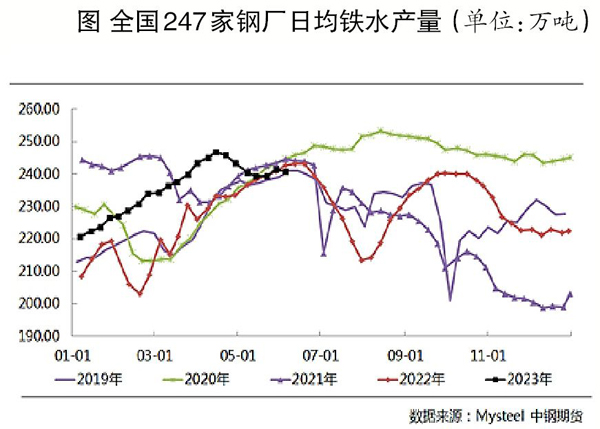 從目前房地產(chǎn)、基建等鋼鐵需求側環(huán)比數(shù)據(jù)來看,淡季終端需求邊際好轉概率較低,短期鐵礦石價格向上驅動力偏弱。中期來看,粗鋼產(chǎn)量同比大幅增加,按平控基準估算,后期鐵礦石需求同比將出現(xiàn)顯著下降。若考慮廢鋼供應量回升對生鐵產(chǎn)量的替代作用,則鐵礦石需求下滑將更為顯著,利空遠月需求。若該政策擴大至全國范圍,則鐵礦石需求環(huán)比降幅同樣顯著。筆者預估,5月—12月份日均鐵水產(chǎn)量或下降至226.7萬噸(鋼聯(lián)口徑)。截至6月1日,日均鐵水產(chǎn)量為240.81萬噸,預計后市下降幅度為14.11萬噸。