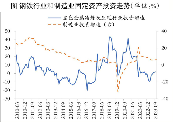 2024年粗鋼產量預計相比2023年將回落1130噸,約為10.19億噸。一方面,受需求和利潤大周期下行影響,鋼鐵行業投資增速明顯放緩。2023年前10個月,黑色金屬冶煉及壓延行業投資同比增速僅為1.9%,遠低于制造業投資6.2%的增速,且這一態勢已經持續近兩年。另一方面,受高供應影響,2023年第4季度之后,長流程鋼廠再度陷入持續虧損狀態。如果這一趨勢持續,大概率會進一步壓低鋼材的產能利用率。