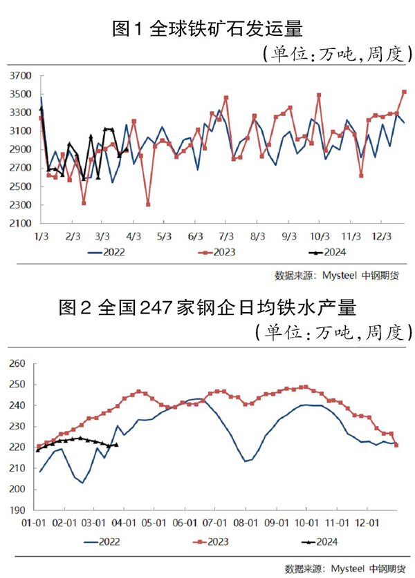 在供應端,進口礦供應整體保持中位偏高水平。澳大利亞颶風影響消除后,澳大利亞方面鐵礦石發運總量及發往中國的鐵礦石量均出現回升,巴西方面鐵礦石發運量出現大幅回落。后期澳大利亞必和必拓、FMG礦山進入財年沖量周期,預期主流礦山鐵礦石發運量不會出現持續性下滑。