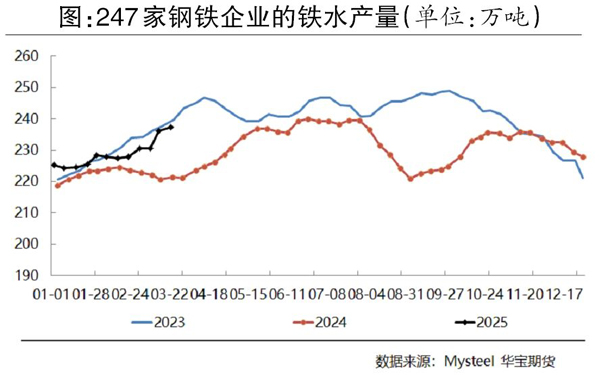 筆者認為,第1季度關稅政策對黑色系期貨價格的影響不充分,后續會對鐵礦石價格帶來三方面影響:一是直接貿易,關稅政策落地將進一步拖累鋼材出口需求;二是轉口影響,第1季度黑色系期貨定價偏強,轉口國關稅大幅增加,后期鐵礦石價格可能轉弱;三是關稅升級后國內政策增量預期增強,關注4月下旬中共中央政治局會議在財政端或房地產端政策及貨幣政策增量。短期關注超預期的鐵水產量,4月份若消費刺激和搶出口需求拐點出現,黑色系期貨存在負反饋下跌壓力,鐵礦石供需寬松壓力將進一步凸顯。