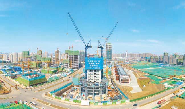 3月15日,濟南CBD(中央商務區)超高層建筑“泉”塔樓項目復工后已安裝7節外框柱和8層梁,安裝核心筒預埋件到14層,到達高度地上35米(如圖)。該項目總建筑面積20.27萬平方米,T1塔樓建筑面積9.6萬平方米,高度245米,為超高層建筑,含鋼量約11500噸。山鋼萊鋼建設濟南分公司負責該項目的鋼結構專業承包。(特約通訊員 李建輝 攝)