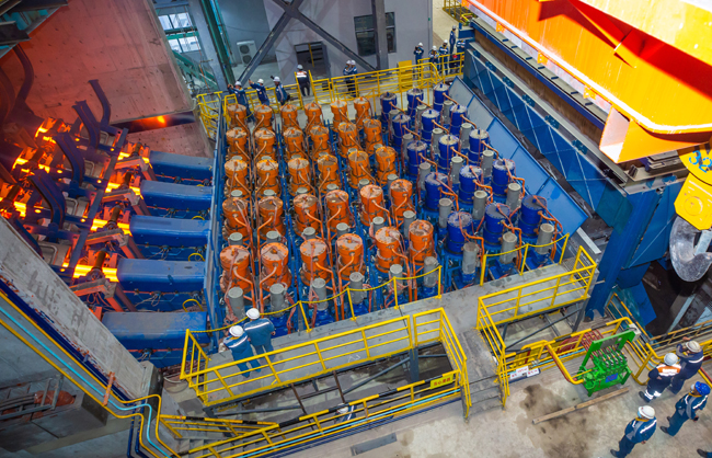 4月15日,馬鋼“十三五”重點工程特鋼大方坯連鑄機熱負荷試車一次成功。據悉,該特鋼大方坯連鑄機采用了中包感應加熱、鑄坯輕重壓下等先進技術,設計年生產能力55萬噸,建設工期為一年。圖為馬鋼特鋼大方坯連鑄機順利出坯場景。(特約通訊員 羅繼勝 攝)