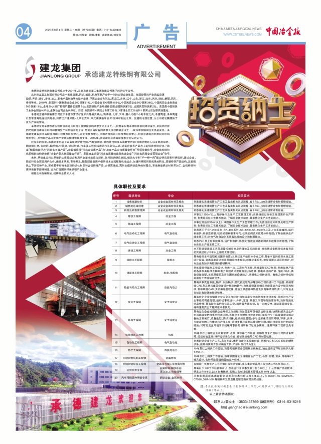 地址:北京市朝陽區安貞里三區26樓 郵編:100029 電話:(010)64442120/(010)64442123 傳真:(010)64411645 電子郵箱:csteelnews@126.com