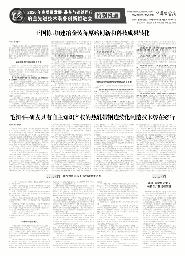 王國棟:冶金裝備原始創新與成果轉化的六要素
