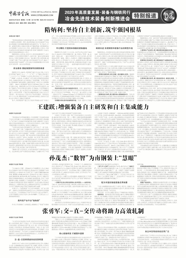 《中國冶金報》會議特別報道三版