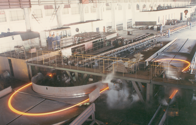 2、為解決軋鋼缺少船板鐵等原材料供應問題,調優產品結構,滿足市場對鋼材多品種多規格的需求,1987年11月1日,永聯軋鋼廠250軋鋼車間建成投用,該車間主要設備有連續式加熱爐一座,250軋機(5組)一套,推齒式冷床等,以手工操作為主,可生產直徑10至25毫米的圓鋼和螺紋鋼,也可生產小規格的異型鋼材,年生產能力為1.8萬噸。