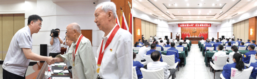 右圖:本鋼集團黨委舉行“光榮在黨50年”紀念章頒發儀式現場。