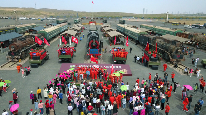 寧夏鋼鐵集團“時代光耀”基地舉辦紅歌大聯唱 火車大游行歡慶“五一”活動