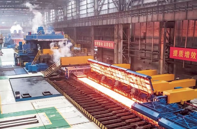 圖為安鋼1780熱連軋產線正在批量生產汽車用高強度熱軋卷板。(安鋼供圖)