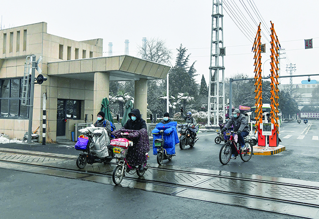 1月23日8時整,安鋼集團取消安陽駐地各單位封閉運行模式,轉為常態化疫情管控模式。為遏制疫情擴散蔓延,自1月15日零點,安鋼集團對安陽駐地單位從嚴從緊落實管控措施,實行封閉管理。緊要關頭、關鍵時刻,廣大職工識大體、顧大局,匆匆告別家人,奔赴崗位,連續奮戰在抗疫保產第一線。圖為1月23日,安鋼職工們按時正常下班有序離開廠區,高高興興把家還。(常達 攝)