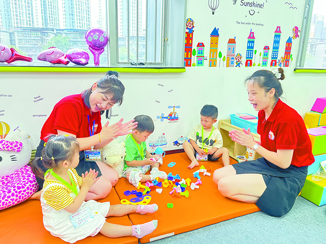 7月5日,武漢市中小學生暑假第一天,中國寶武武鋼集團青青教育公司承辦的武鋼大廈園區員工子女托管中心如期開班。近百名托育、幼兒園、小學階段的小可愛們,從學?!盁o縫銜接”來到武鋼大廈托管中心度暑假。據了解,武鋼集團工會為切實解決園區員工子女暑期托管的后顧之憂,在武鋼大廈園區的協助下,聯合青青教育共同開辦員工子女托管班,并在吃、學、管等方面進行了周密安排,讓員工們實現了“帶娃上班”。圖為托管班老師正帶領孩子一起做游戲。