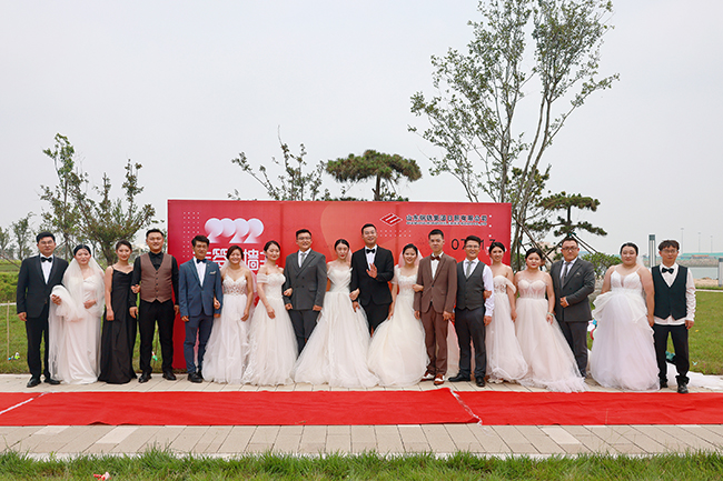 8月4日,在山鋼日照公司松虎灣公園內,9對來自基層單位的新人牽手相依,體驗著幸福時光。為引導廣大青年樹立喜事新辦、勤儉節約的婚慶新風,山鋼日照公司團委結合青年職工意愿,籌劃舉辦第一屆“愛在山鋼 緣定日照”集體婚禮專屬活動。在婚禮現場,新人們在共青林集體種下屬于自己的愛情樹。該公司還為每對新人在日照公司的網紅景點拍攝婚紗照,留下美麗瞬間。圖為集體婚禮現場。(樊祥文/文 郭陽/攝)
