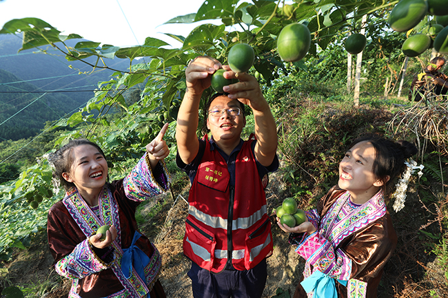 9月3日,柳鋼集團(tuán)2022年鄉(xiāng)村振興定點(diǎn)幫扶項(xiàng)目——廣西柳州市融水苗族自治縣安陲鄉(xiāng)烏吉村結(jié)對(duì)共建的56畝羅漢果鄉(xiāng)村振興“同心林”碩果累累,進(jìn)入了收果期,預(yù)計(jì)將為烏吉村16戶結(jié)對(duì)幫扶家庭共增加逾25萬元的可觀收入。據(jù)悉,2021年以來,柳鋼選派9名新一輪駐村干部,投資85.1萬元完成19項(xiàng)鄉(xiāng)村振興援建項(xiàng)目,累計(jì)投入各類幫扶資金、物資折合超5000萬元。圖為柳鋼派駐駐村第一書記楊秀坤(中)正與脫貧戶一起采摘豐收的果實(shí)。(蔣國華 攝)