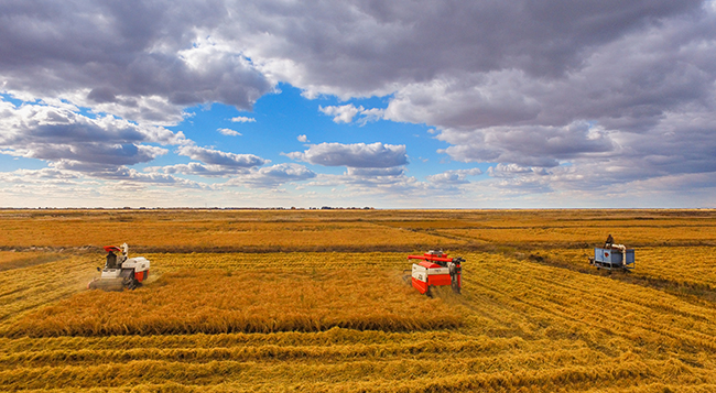 金秋10月,在位于吉林省白城市鎮賚縣由鞍鋼集團礦業公司負責改良鹽堿稻田內,一臺臺收割機在廣闊的田野里忙碌收割(如圖)。近年來,鞍鋼礦業公司通過與國內知名院校合作,共同組建專業技術和現場管理團隊,利用企業豐富的鐵尾礦資源,發揮其特有的粒形及組分優勢,實現鹽堿地改良為標準農田,構建起“公司+農戶”管理模式和“1+1”鹽堿地改良技術體系。據介紹,今年種植的水稻總產量有望超過250噸,折合畝產271公斤,同比提高6%以上。(劉金宇/文 邸萬雷/攝)