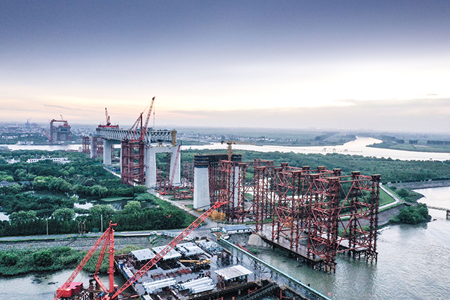 2月19日,常泰長江大橋南岸工程正在施工中(如圖)。據悉,正在建設中的常泰長江大橋連接江蘇省常州市與泰州市,全長10.03公里,設計時速100公里,下層橋面為設計時速200公里的兩線城際鐵路與設計時速80公里的普通公路,是集高速公路、城際鐵路與普通公路“三位一體”的跨江大橋。河鋼集團石鋼京誠公司制造的1000噸橋梁鋼支座鑄件產品應用于該大橋建設。(高益芳/文 楊磊/攝)