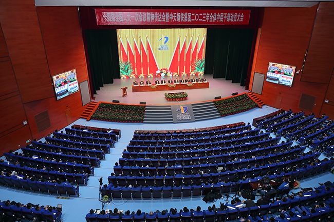 3月17日,全國人大代表、中天鋼鐵董事局主席、總裁、黨委書記董才平回到中天鋼鐵集團立即召開十四屆全國人大一次會議精神傳達會暨中天鋼鐵集團2023年全體中層干部動員大會,