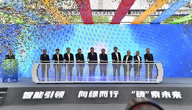 首發的產品中,15SQF1250產品是面向未來的中頻取向電工鋼新產品,是全球最薄取向電工鋼產品代表,與傳統深加工極薄帶0.15毫米最高牌號相比,性能水平提升7個牌號,達到全球領先水平。圖為項目推桿啟動儀式。(特約通訊員 王京廣 攝)