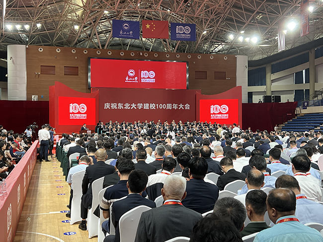 百年學府風華正茂,十秩榮光奮斗長歌。9月16日,慶祝東北大學建校100周年大會在東北大學劉長春體育館隆重舉行。教育部黨組書記、部長懷進鵬宣讀習近平總書記給東北大學全體師生的回信并講話。據悉,東北大學建校迄今,先后為國家培養了40多萬名本科生和研究生,在東北大學學習、工作過的中外院士達70多人,該校先后成為國家“211工程”和“985工程”重點建設大學,以及“雙 一流”建設高校。圖為慶祝東北大學建校100周年大會會場。(黃展 攝)