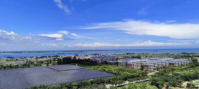 11月20日,中國寶武湛江鋼鐵廠內(nèi)光伏發(fā)電量首次突破1億度(千瓦時,下同)大關(guān)。其中,2023年7月份,湛江鋼鐵全月發(fā)電量達到1366萬度,達到月度最高水平。 據(jù)悉,湛江鋼鐵光伏發(fā)電項目起步于2021年。該廠充分利用廠區(qū)環(huán)境先后開發(fā)了屋面光伏、水面光伏、地面光伏。從2021年至2023年,湛江鋼鐵合計已安裝、立項126兆瓦光伏機組,占地面積達120余萬平方米。圖為湛江鋼鐵廠東區(qū)光伏發(fā)電項目俯瞰。(彭翔鳳/文 徐長盛/攝)