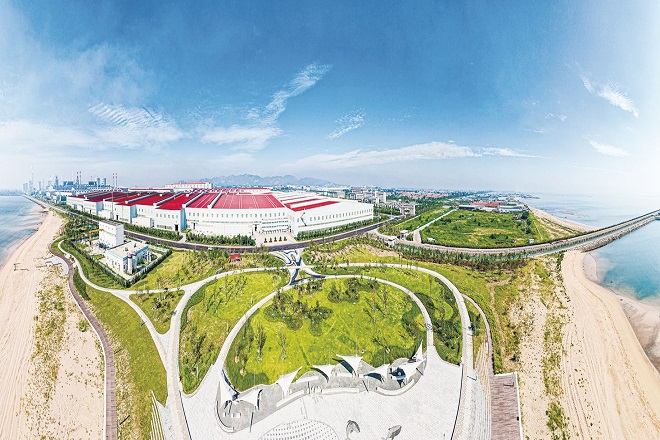 圖為山鋼日照公司廠區航拍。 (山鋼日照公司 供圖)