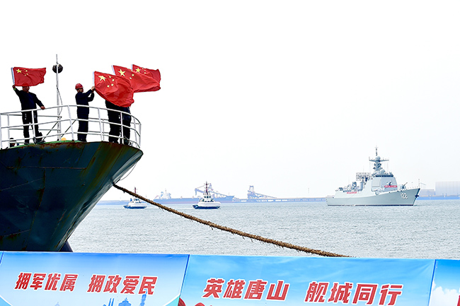 4月20日—4月25日,以河北省唐山市命名的中國人民解放軍海軍唐山艦靠泊唐山市曹妃甸區首鋼京唐成品碼頭。今年是人民海軍成立75周年,為進一步弘揚擁軍優屬、擁政愛民光榮傳統,回應社會對人民海軍發展的關切期望,感謝人民群眾對海軍部隊的關注支持,海軍唐山艦與唐山市開展“英雄唐山·艦城同行”艦艇開放和軍地共建活動,這是唐山艦入列4年來,首次“回家”。圖為4月20日9時許,中國人民解放軍海軍唐山艦“沖破”晨霧,向首鋼京唐成品碼頭駛來。(記者 楊立文/文 通訊員 張云龍/攝)