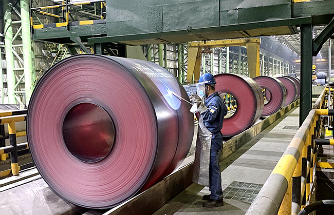 日前,酒鋼宏興股份碳鋼薄板廠成功研發耐硫酸露點腐蝕鋼帶09CrCuSb,產品質量達到行業領先水平,填補了西北市場空白。此次開發的耐酸鋼規格為3.0毫米×1250毫米,各項性能指標均超過技術標準要求。截至目前,200余噸耐硫酸露點腐蝕鋼帶09CrCuSb已成功下線并交付客戶使用。 據悉,耐硫酸露點腐蝕鋼帶是一種既耐硫酸露點腐蝕又耐大氣腐蝕的材料,因添加了Cr、Cu、Sb 等元素,在基體表面形成一層致密且黏附性較好的鈍化膜,阻隔酸和水向基體內部滲入,被腐蝕速率顯著降低。該產品主要應用于冶金、電力、石化等工業領域,用于制造需要對抗硫酸露點腐蝕的換熱器、空氣預熱器等設備部件。圖為10月22日該廠職工正在為剛下線的耐硫酸露點腐蝕鋼帶09CrCuSb編碼。(李嘉昕攝)