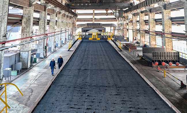 12月5日,鞍鋼集團攀鋼釩煉鐵廠燒結分廠燒結機正在連續生產(如圖)。今年第4季度以來,攀鋼釩燒結系統全面推廣采用“活性灰+石灰石”取代“生石灰+活性灰+石灰石”工藝,持續優化熔劑結構,穩步提高全釩鈦球團使用比例,推動高爐爐料結構優化。今年前10個月,該廠球團礦使用量同比提高0.3個百分點,爐渣二氧化鈦含量同比提高0.26個百分點,燒結系統全面停用進口礦。(何仁江攝)