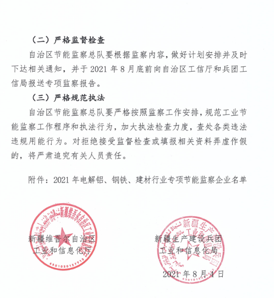 近日,新疆發(fā)布關于開展2021年電解鋁、鋼鐵、水泥行業(yè)企業(yè)專項節(jié)能監(jiān)察的通知,涉及鋼鐵企業(yè)10家。