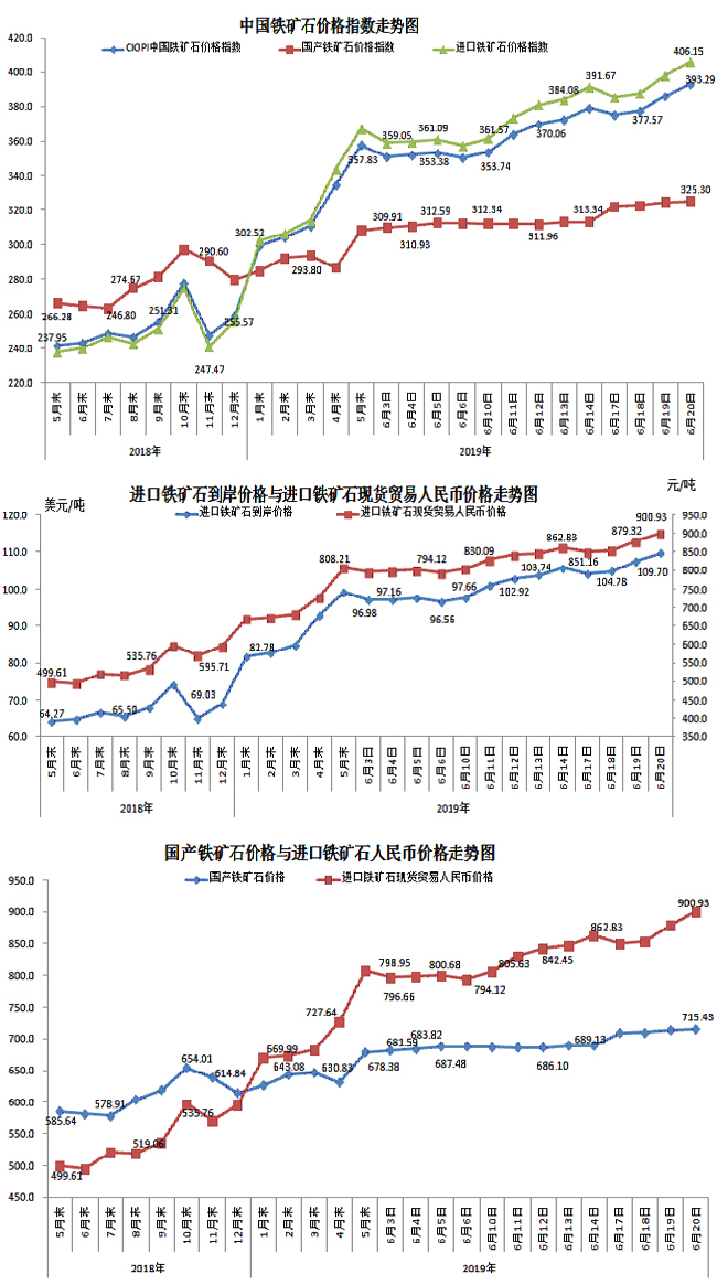 6月20日,中國鐵礦石價格指數(shù)(CIOPI)393.29點,環(huán)比上升6.96點,升幅為1.80%。其中:國產(chǎn)鐵礦石價格指數(shù)為325.30點,環(huán)比上升0.68點,升幅為0.21%;進(jìn)口鐵礦石價格指數(shù)為406.15點,環(huán)比上升8.15點,升幅為2.05%。