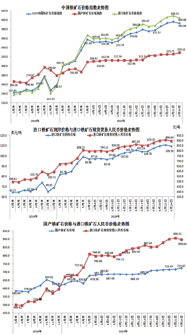 6月24日,國(guó)產(chǎn)鐵礦石62%品位干基鐵精礦含稅價(jià)格為723.87元/噸,環(huán)比每噸上升7.44元,升幅為1.04%;比進(jìn)口鐵礦石低172.77元/噸,降幅為19.27%;當(dāng)月平均價(jià)格為697.74元/噸,比進(jìn)口鐵礦石低146.72元/噸,降幅為17.37%。
