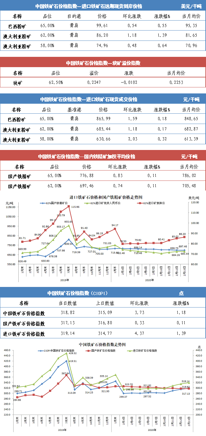 【行業指數】2月13日中國鐵礦石價格指數