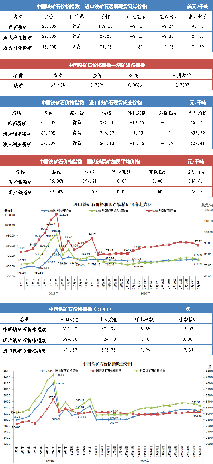 【行業指數】2月26日中國鐵礦石價格指數