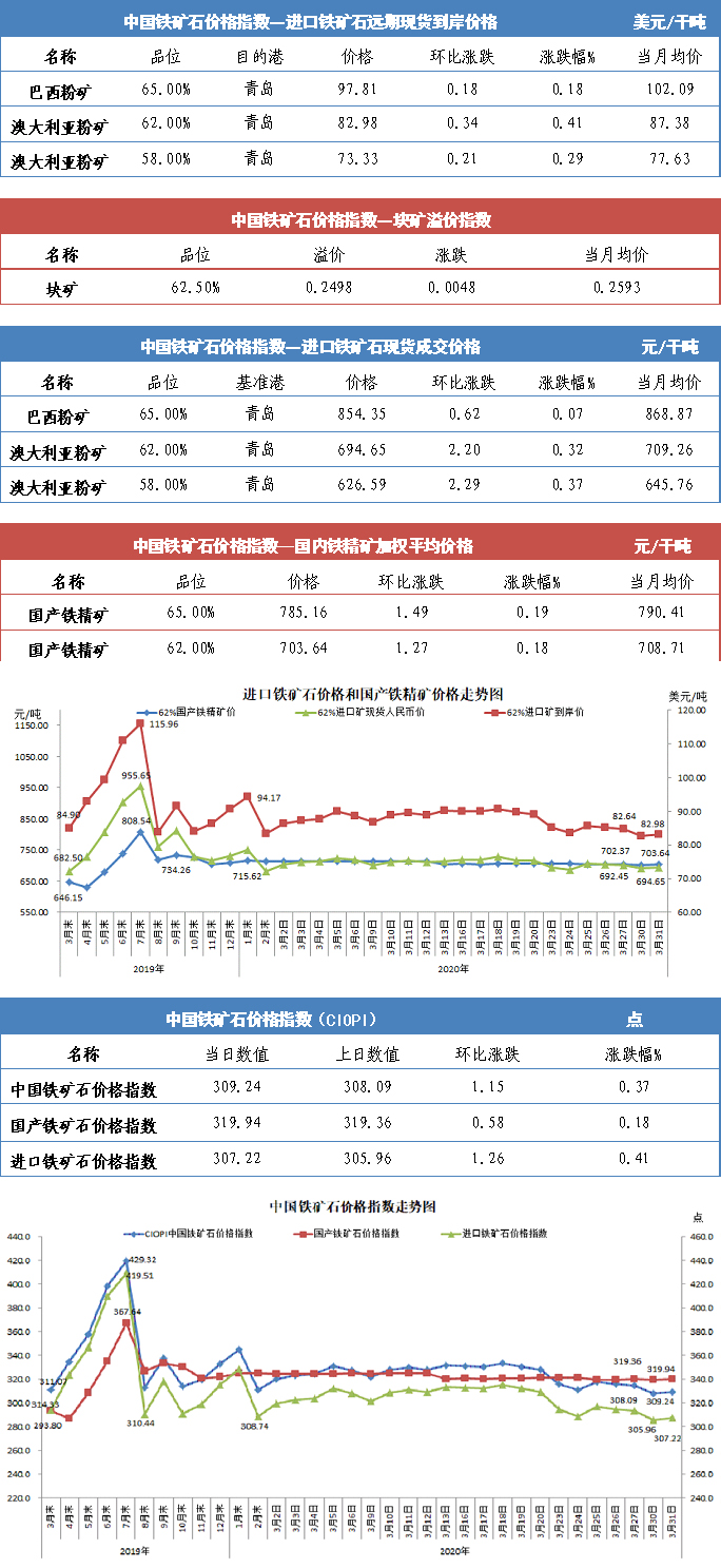 【行業指數】3月31日中國鐵礦石價格指數