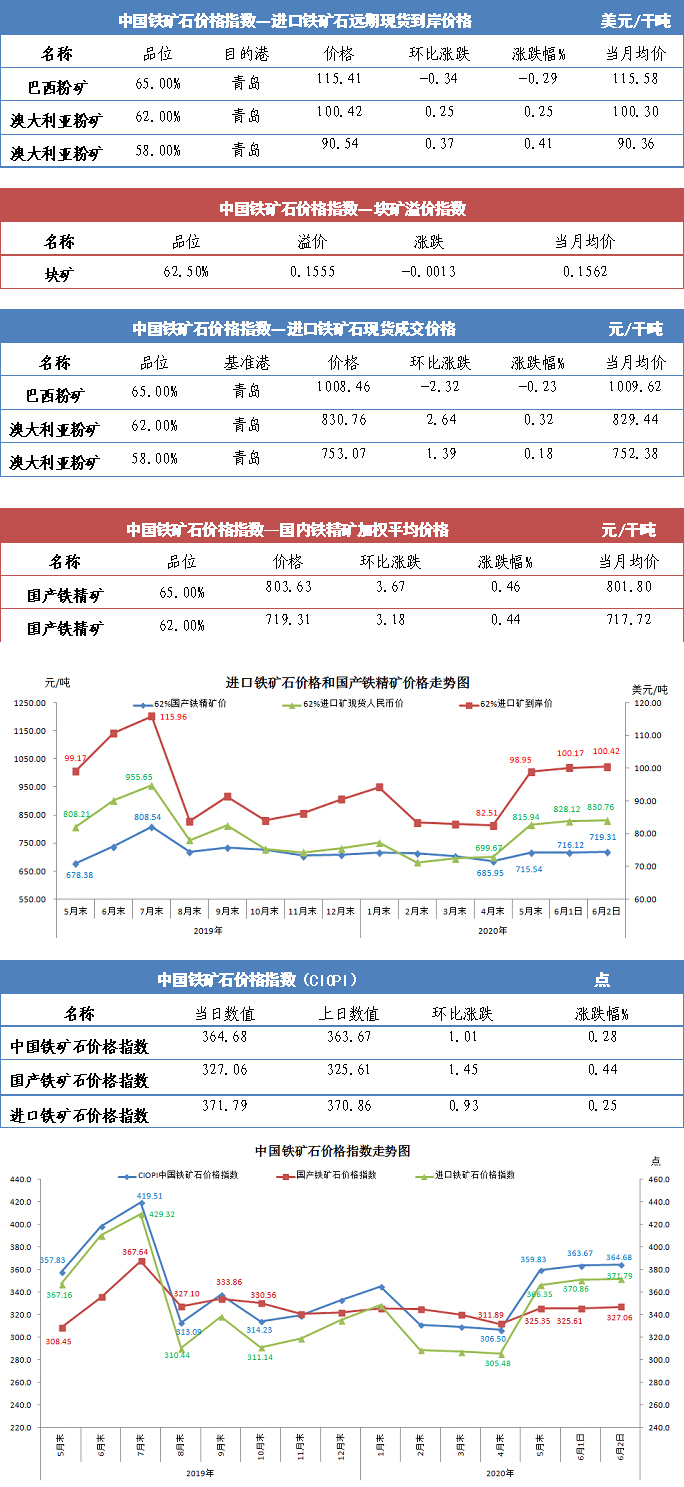 【行業(yè)指數(shù)】6月2日中國(guó)鐵礦石價(jià)格指數(shù)