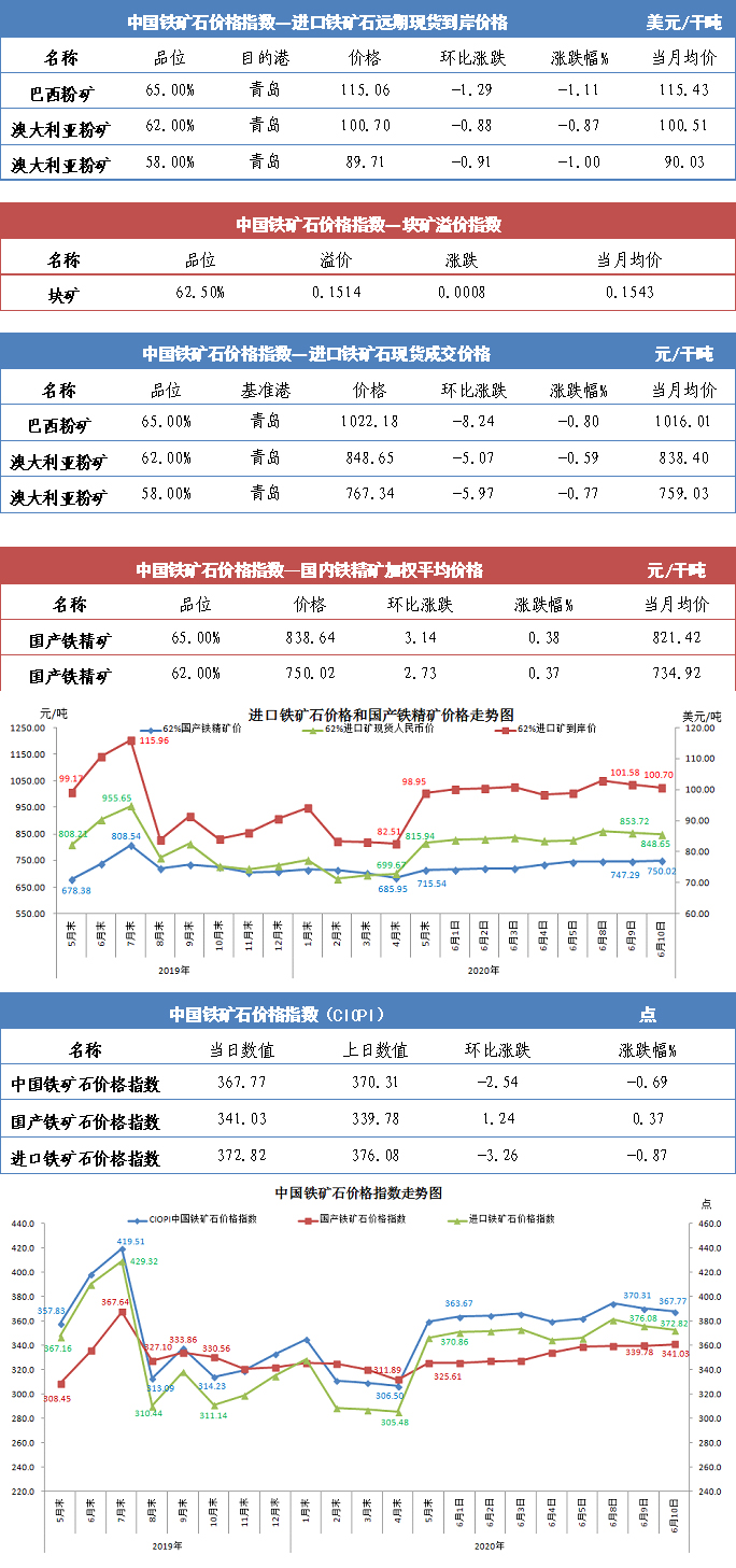 【行業指數】6月10日中國鐵礦石價格指數