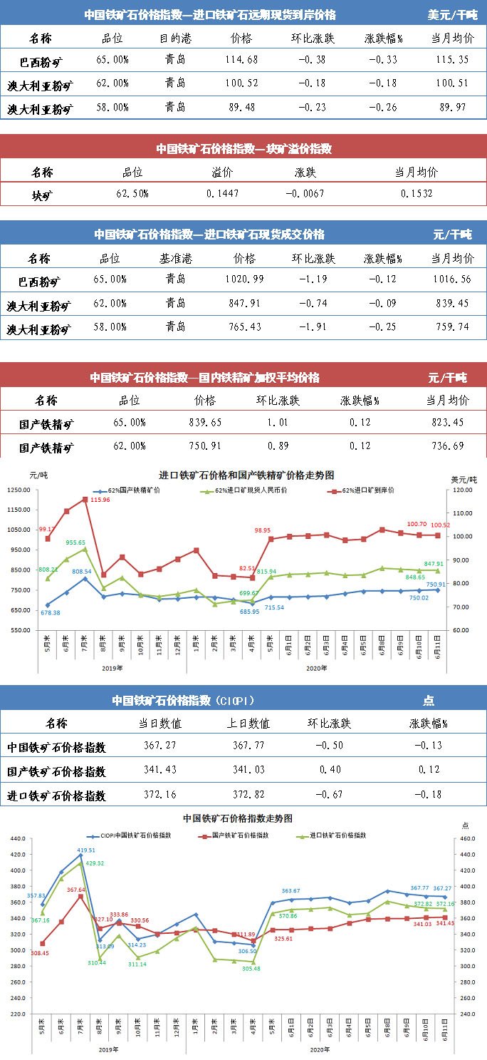 【行業(yè)指數(shù)】6月11日中國(guó)鐵礦石價(jià)格指數(shù)
