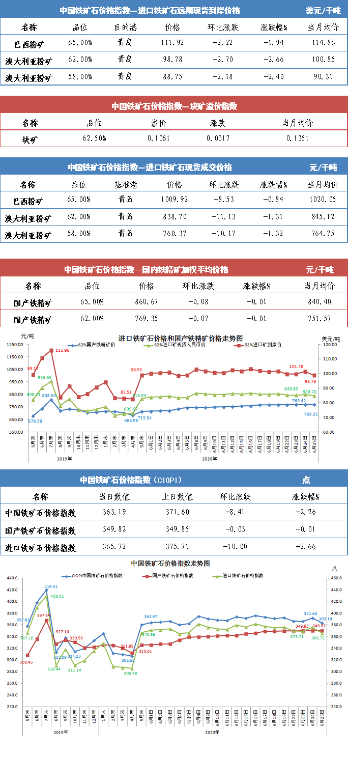 【行業(yè)指數(shù)】6月29日中國鐵礦石價格指數(shù)