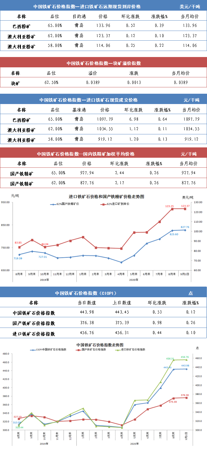 【行業(yè)指數(shù)】9月1日中國鐵礦石價(jià)格指數(shù)