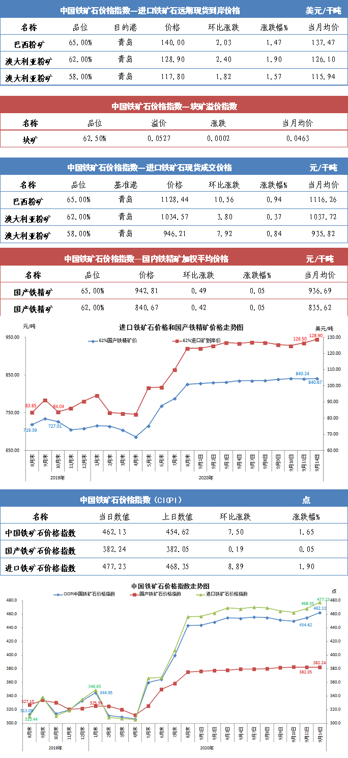 【行業(yè)指數】9月14日中國鐵礦石價格指數