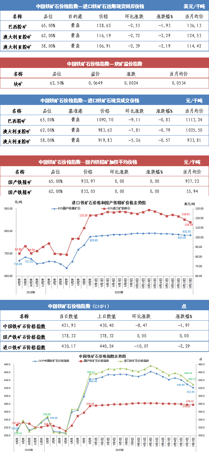 【行業指數】9月23日中國鐵礦石價格指數