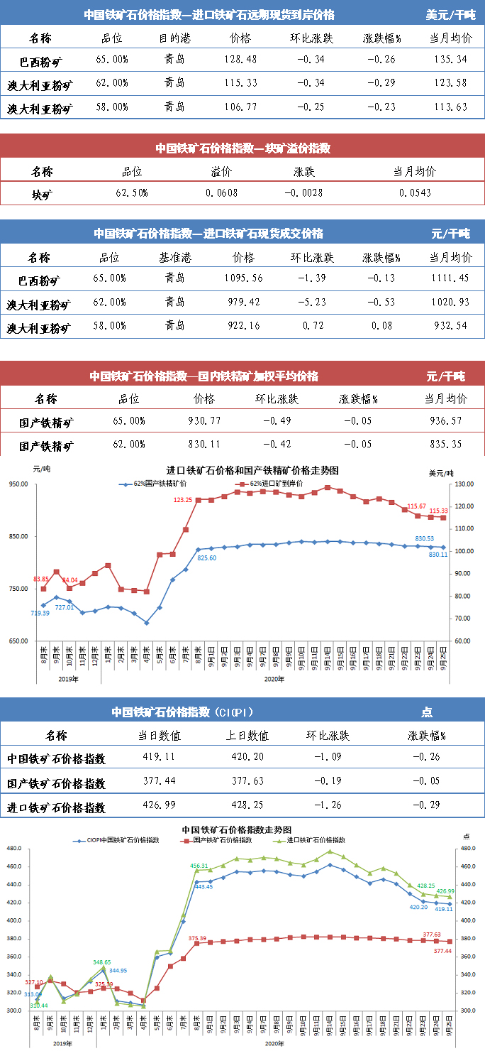【行業指數】9月25日中國鐵礦石價格指數